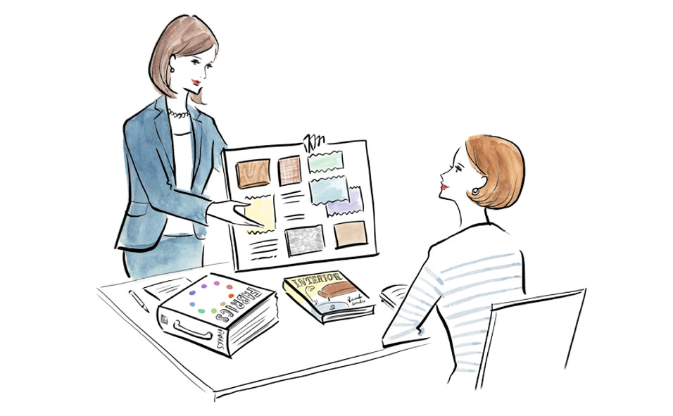 デザインした空間をイメージできるスケッチや設計図面、素材サンプルを プレゼンテーションします。また、実際の工事費用についてのお見積もりもご提示します。