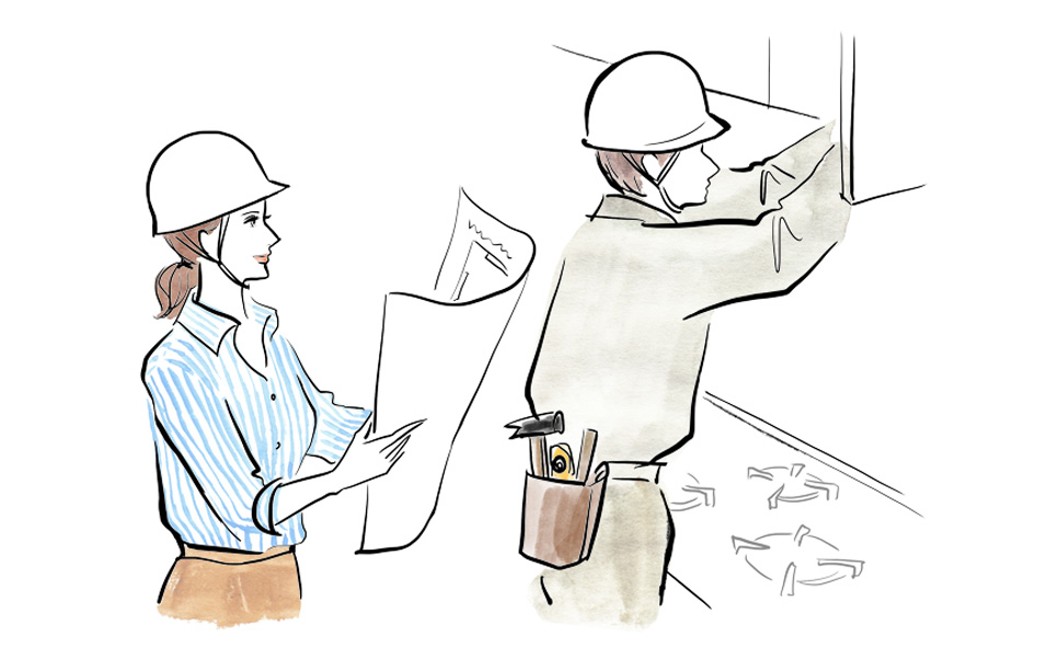 直されたい箇所やお部屋を拝見しながらお客さまのご家族構成や生活スタイル、ご要望をお聞きして現場調査を行います。図面やお見積もりを作成する為の情報収集をします。
